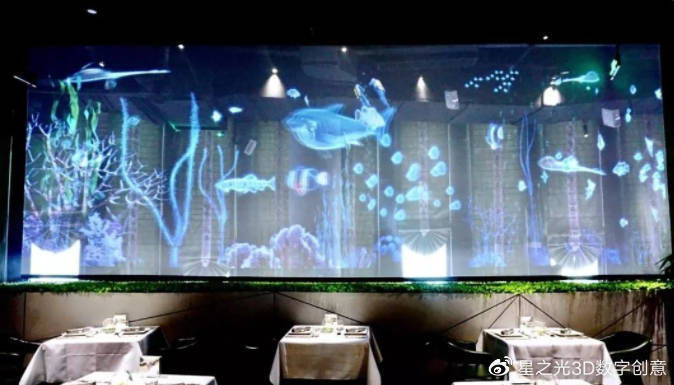 3D全息投影餐廳具有其獨(dú)特的魅力,它可以讓你時(shí)而置身海洋世界,時(shí)而有群花綻放,時(shí)而有亭臺(tái)樓閣,讓你在真實(shí)與虛構(gòu)、時(shí)間與空間中品味美食、美酒、音樂(lè)人生!