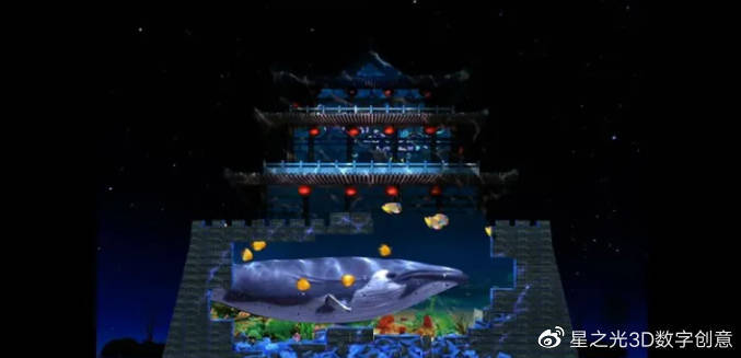 建筑投影利用多媒體數(shù)碼投影技術,結合虛擬現(xiàn)實、裸眼3D視覺、主題動畫等技術,在建筑外部進行光影修飾,使光影與主題視覺上的變換,給人以強烈的視覺沖擊!