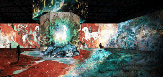“遇見敦煌 光影藝術展”將敦煌石窟壁畫彩塑與光雕投影技術相結合,讓人瞬間有穿越千年之感,仿佛身臨其境來到莫高窟,見到了真實壁畫。