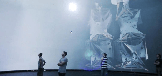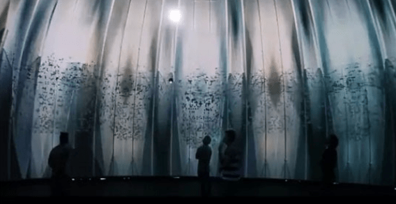 整個展示的場地呈現(xiàn)出的是一種特殊的穹頂結構,觀眾處于一個封閉的空間內,可以感受各種各樣的視覺效果的變化。