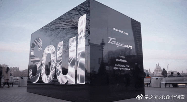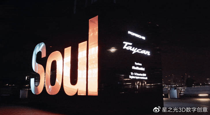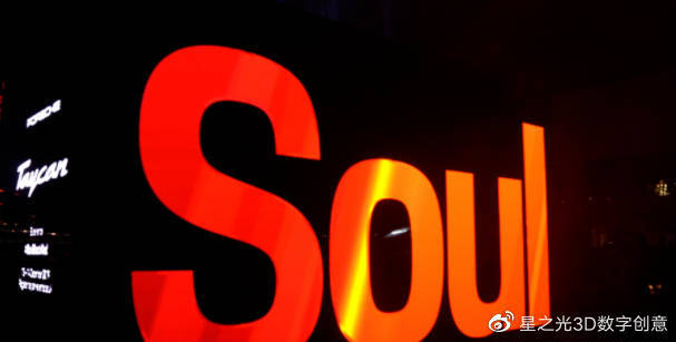 “ Soul”一詞的正面是鏡面鏤空結(jié)構(gòu)配合播放動(dòng)態(tài)視頻的LED屏幕。