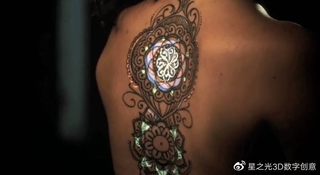 全息人體藝術是近幾年才出現(xiàn)的一門新的人體藝術。全息人體藝術大多采用全息技術和 CG技術,來制作人體彩繪、紋身等圖像。