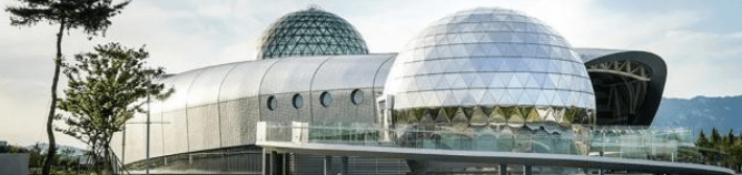 “Space 360(太空360)”,位于光州Lucerium國(guó)家科學(xué)博物館旁邊。外形呈現(xiàn)球狀,直徑12米,是韓國(guó)首個(gè)360°球狀投影系統(tǒng)。