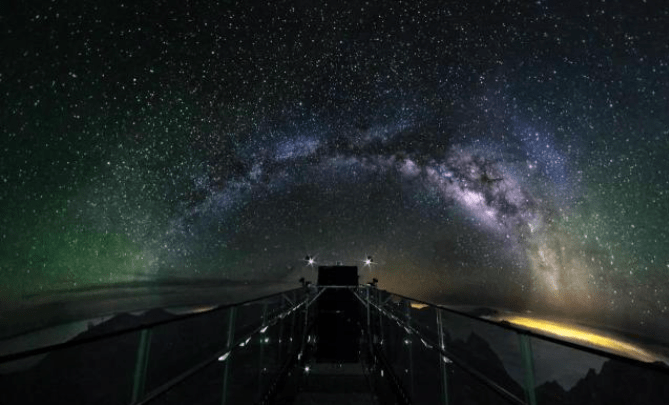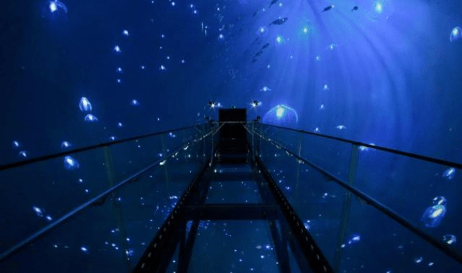 當(dāng)游客們走進(jìn)球體之后,會(huì)看到一段透明的玻璃觀景橋穿過(guò)球體內(nèi)部,游客們只需站在橋上,便可縱觀“全局”。