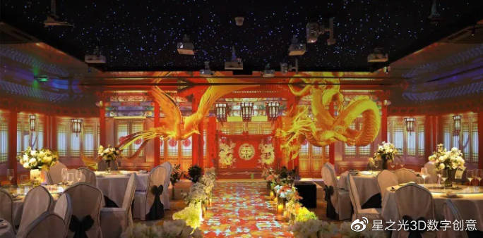 5D全息投影宴會(huì)廳,是以三維全息投影技術(shù)為基礎(chǔ),采用環(huán)幕投影、紗幕投影、互動(dòng) T臺(tái)投影、3D婚紗投影、全息舞美等技術(shù),突破聲、光、電的局限和空間的局限,營造出一種沉浸式的體驗(yàn)。