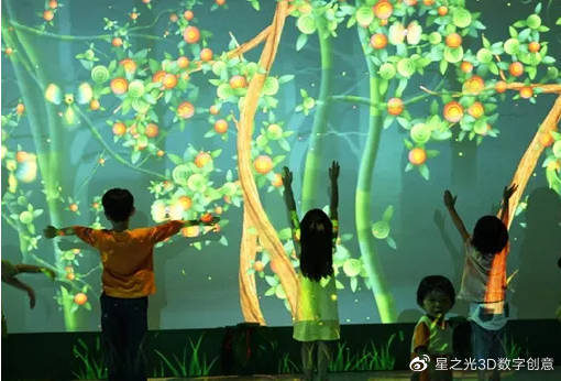 該系統(tǒng)包括投影機、運動捕捉系統(tǒng)、交互自定義軟件。兒童可以用投影設備和墻壁上的虛擬環(huán)境進行互動。在有畫面或怪獸的情況下,采用多點觸控技術,讓小朋友們在游戲中共同玩耍,并將光影和真實的游戲場景相結合,為兒童創(chuàng)造一個充滿想象力的交互式世界。