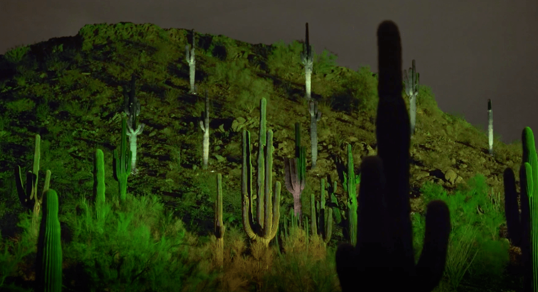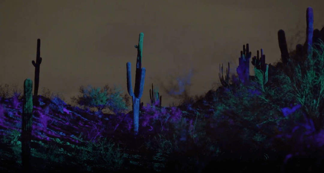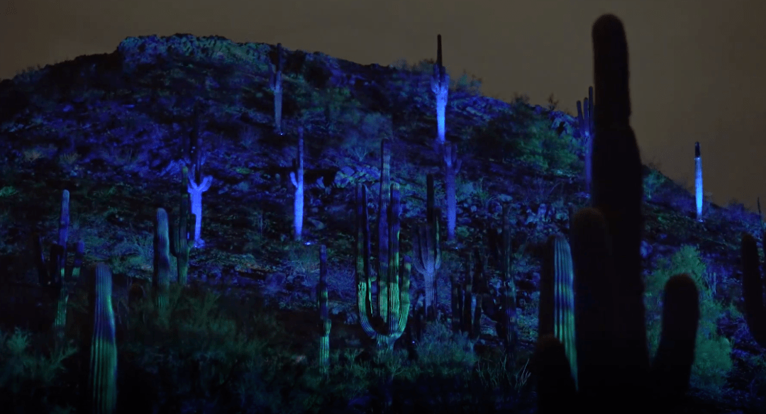 Desert Chorale利用一片生長著巨柱仙人掌的小山坡創(chuàng)作展覽的內(nèi)容,每隔20分鐘就會上演一次光影表演。