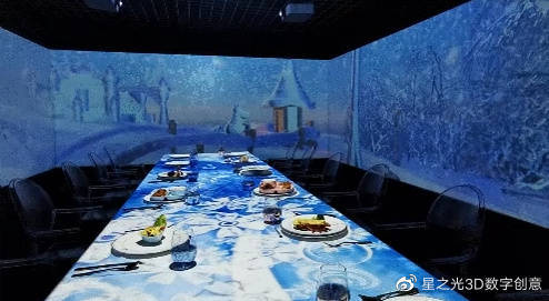 全息光影餐廳運(yùn)用交互式投影技術(shù),將墻面、地面、桌面等進(jìn)行融合,形成光影交互的空間,營(yíng)造出一種可視化的消費(fèi)場(chǎng)景,為品牌創(chuàng)造價(jià)值與影響力提供了有力的支撐。