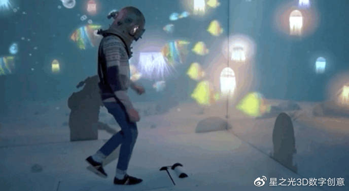 這個(gè)工作使用了投射技術(shù),產(chǎn)生了許多很有意思的效果,它確實(shí)凸顯了這項(xiàng)技術(shù)的潛力。觀看演員們與燈光互動(dòng)-下樓梯,伸手觸摸并不存在的門把手,乘地鐵,漫游海底,跳進(jìn)未知的山洞…盡情享受這一旅程!