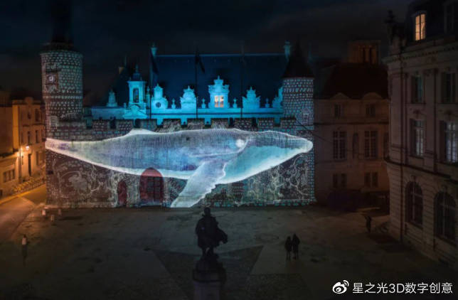 法國(guó)拉羅謝爾市政府大樓在六年后重新裝修后,將其改造成一幅由海洋圖像、天空、陸地和植物組成的建筑投影。風(fēng)門是羅馬風(fēng)格的教堂的一個(gè)重要組成部分,揚(yáng)·恩吉瑪就以此為靈感,設(shè)計(jì)了一打的圖畫。