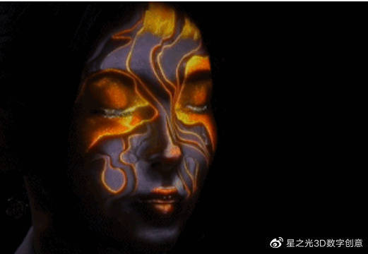 利用3D動畫技術(shù),產(chǎn)生臉部藝術(shù)效果,再將其投影到人的臉部,從而構(gòu)成“影像面具”,從海洋、海豚到面具碎片,都是非常精細(xì)的。