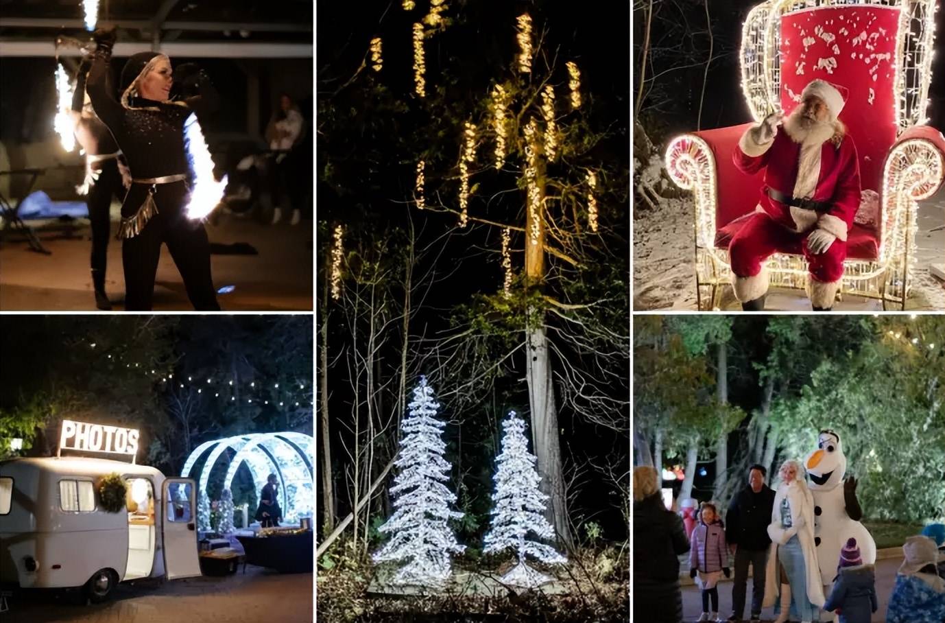 Fairway of Lights 每天晚上都會(huì)有不同的娛樂(lè)活動(dòng)。 你可以與雪花公主見(jiàn)面;在復(fù)古的 Boler 照相亭拍照;在貨柜車內(nèi)玩游戲或乘坐假日火車等等。