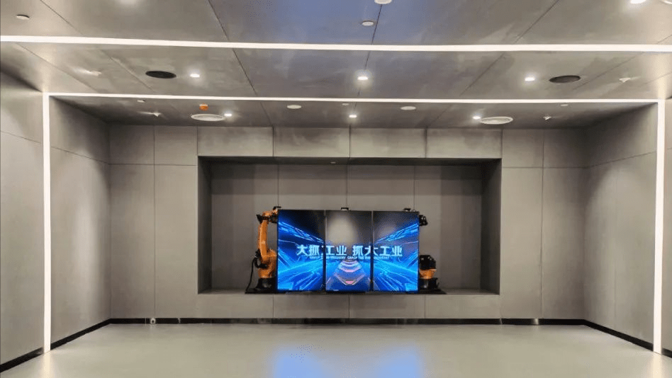 互動體驗(yàn)空間采用機(jī)械臂與移動屏組成的科技裝置,描繪出漳州產(chǎn)業(yè)宏偉藍(lán)圖。
